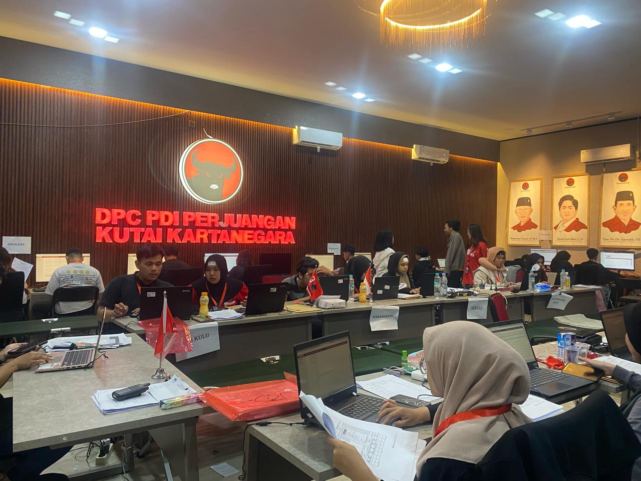 Caption Foto : Potret suasana perhitungan cepat di kantor DPC PDI Perjuangan Kutai Kartanegara