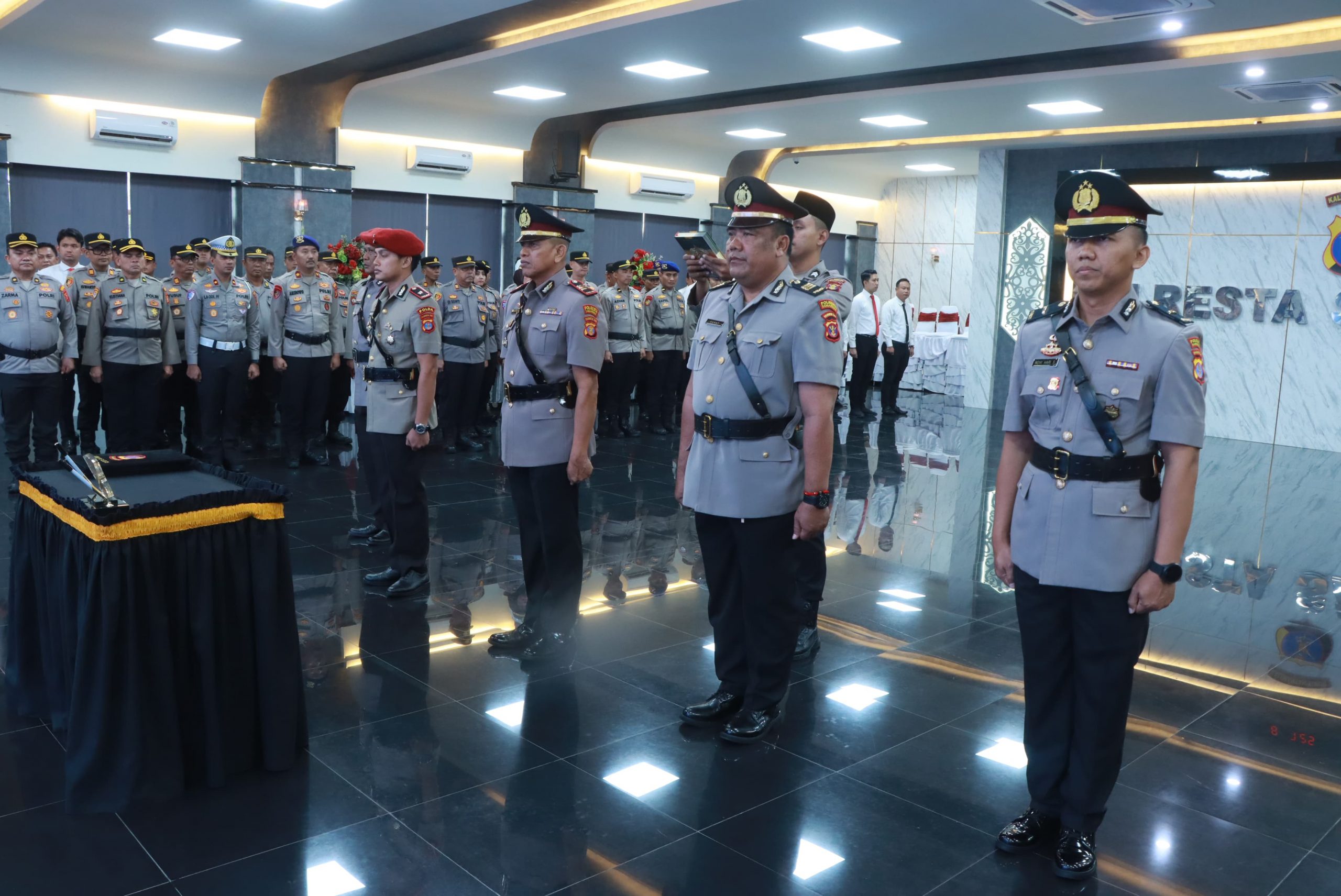 Caption Foto : Prosesi serah terima dan pengukuhan beberapa jabatan strategis di Polresta Samarinda / Humas Polresta Samarinda