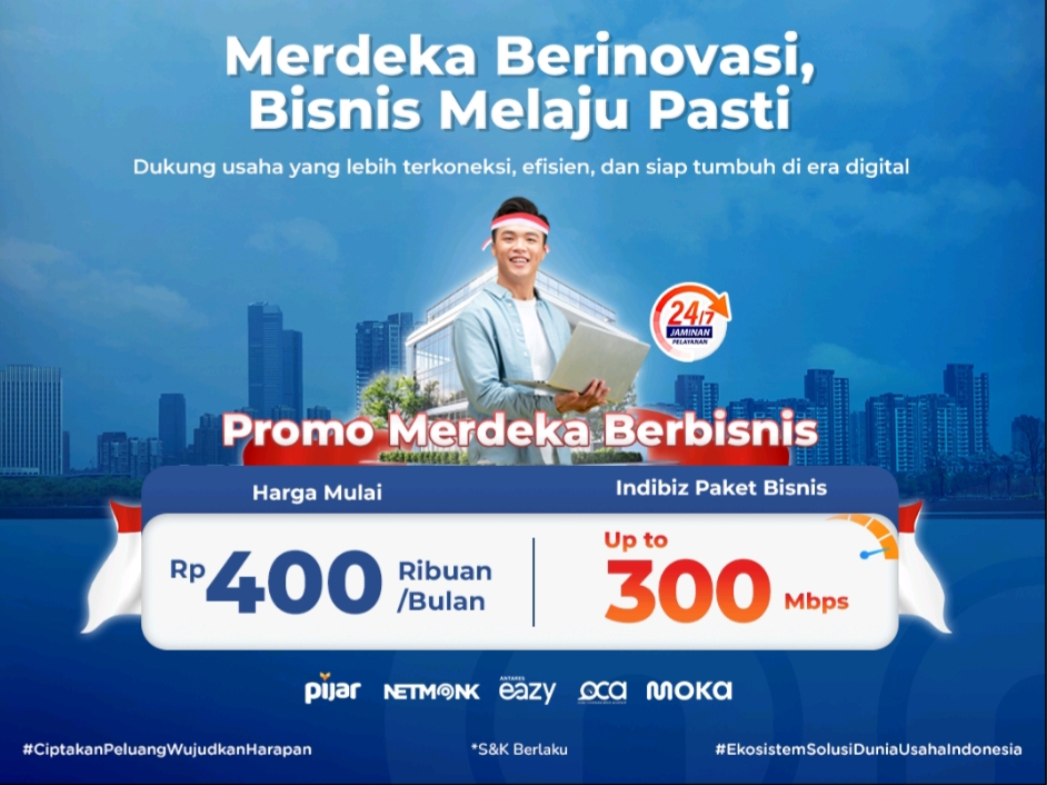 Suarafajar, Jakarta – Telkom Indonesia, melalui ekosistem solusi digital Indibiz ikut merayakan Hari Ulang tahun ke 80 Republik Indonesia. Semangat kemerdekaan ini diwujudkan dengan menghadirkan kemudahan berlangganan internet bisnis cepat melalui program “Promo Merdeka Berbisnis.”