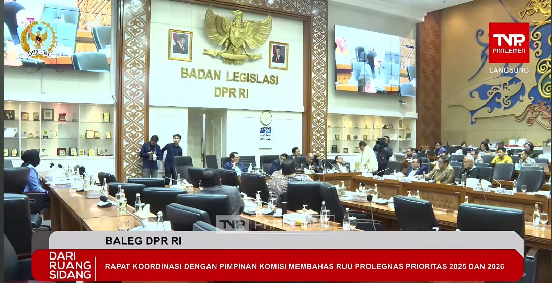 Caption Foto : Rapat koordinasi di Badan Legislasi DPR RI bersama pimpinan komisi membahas RUU Prolegnas Prioritas 2025-2026